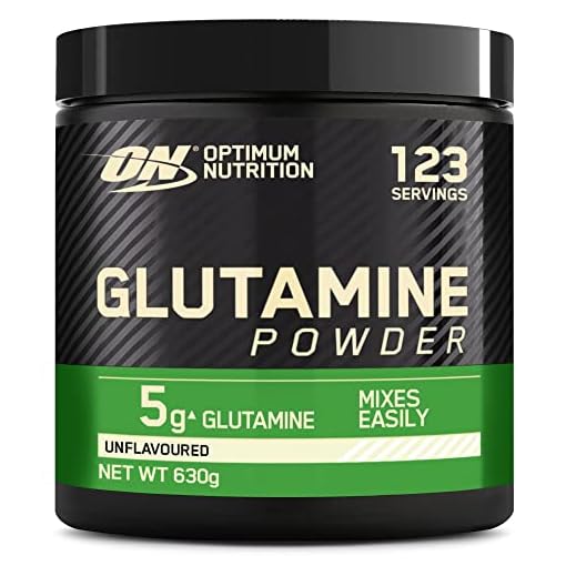 Optimum Nutrition Glutamin-Pulver, l-Glutamin-Aminosäure-Pulver, Nahrungsergänzungsmittel vor und nach dem Training Shake, nicht aromatisiert, 123 Portionen, 630 g