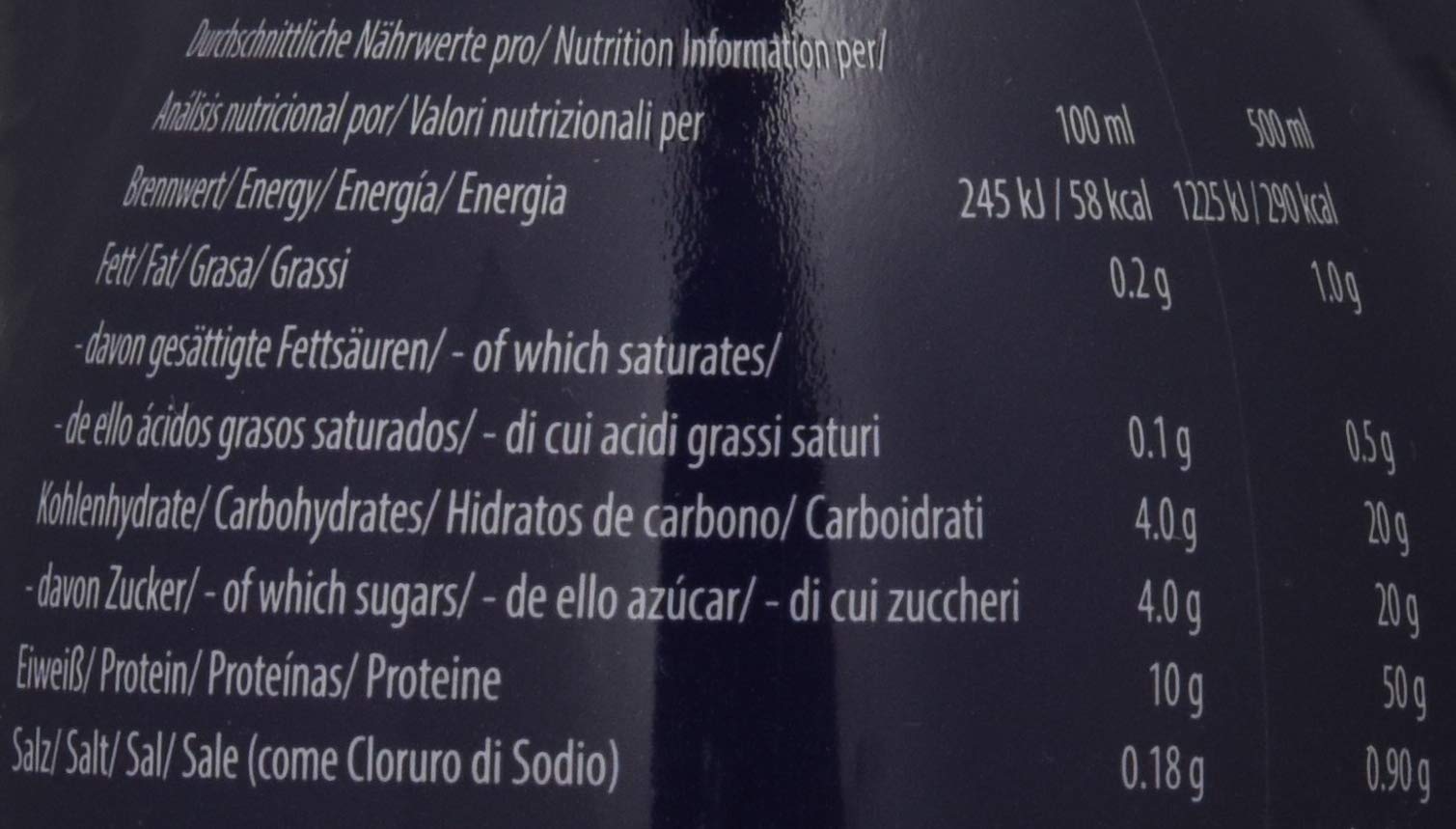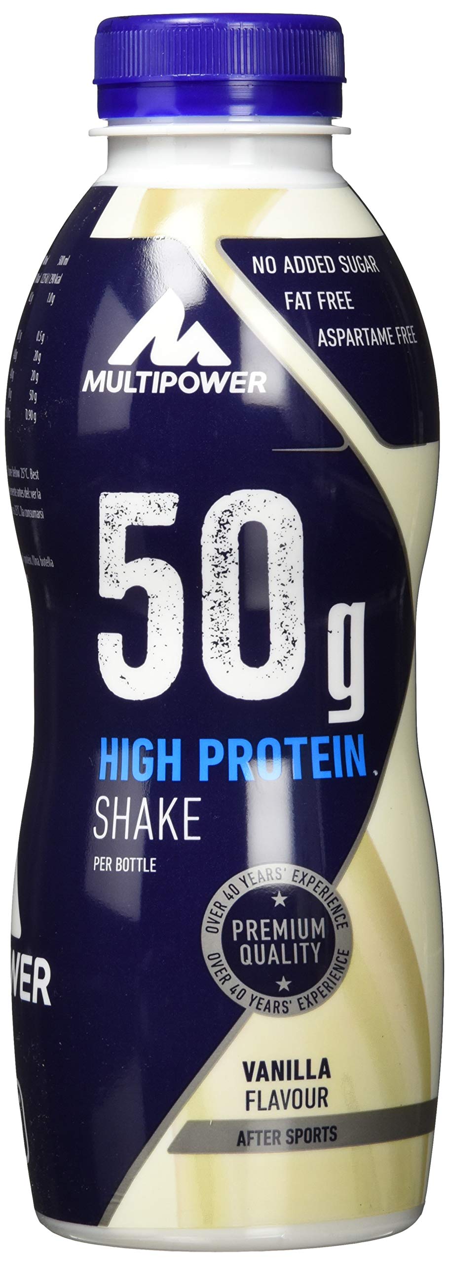 In einer 500 ml Flasche Protein Shake von Multipower sind 50g Protein enthalten aus hochwertigen Milchprotein. Desweiteren hat jede Flasche 315 Kalorien, wovon 24g Kohlenhydrate sind und 2 g Fett. Der Shake eignet sich hervorragend für zwischendurch, ist sehr prakitsch und in verschiedenen Geschmacksrichtungen verfügbar. Ideal für Sportler.