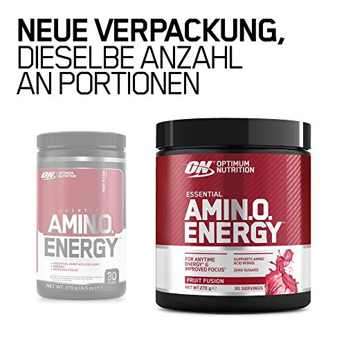 Beim Optimum Nutrition ON Amino Energy Pre Workout Booster handelt es sich um einen koffeinhaltigen Trainingsbooster, der neben natürlichen Koffein auch Vitamin C enthält. Ist sehr kalorienarm und natürlich zuckerfrei. Eignet sich hervorragend für diejenigen, die mehr Power im Training haben wohlen. Super für Kraftsportler geeignet, aber auch für den Alltag, um die Energie im Alltag zu steigern. Jetzt im leckeren Fruit Fusion Geschmack erhältlich.